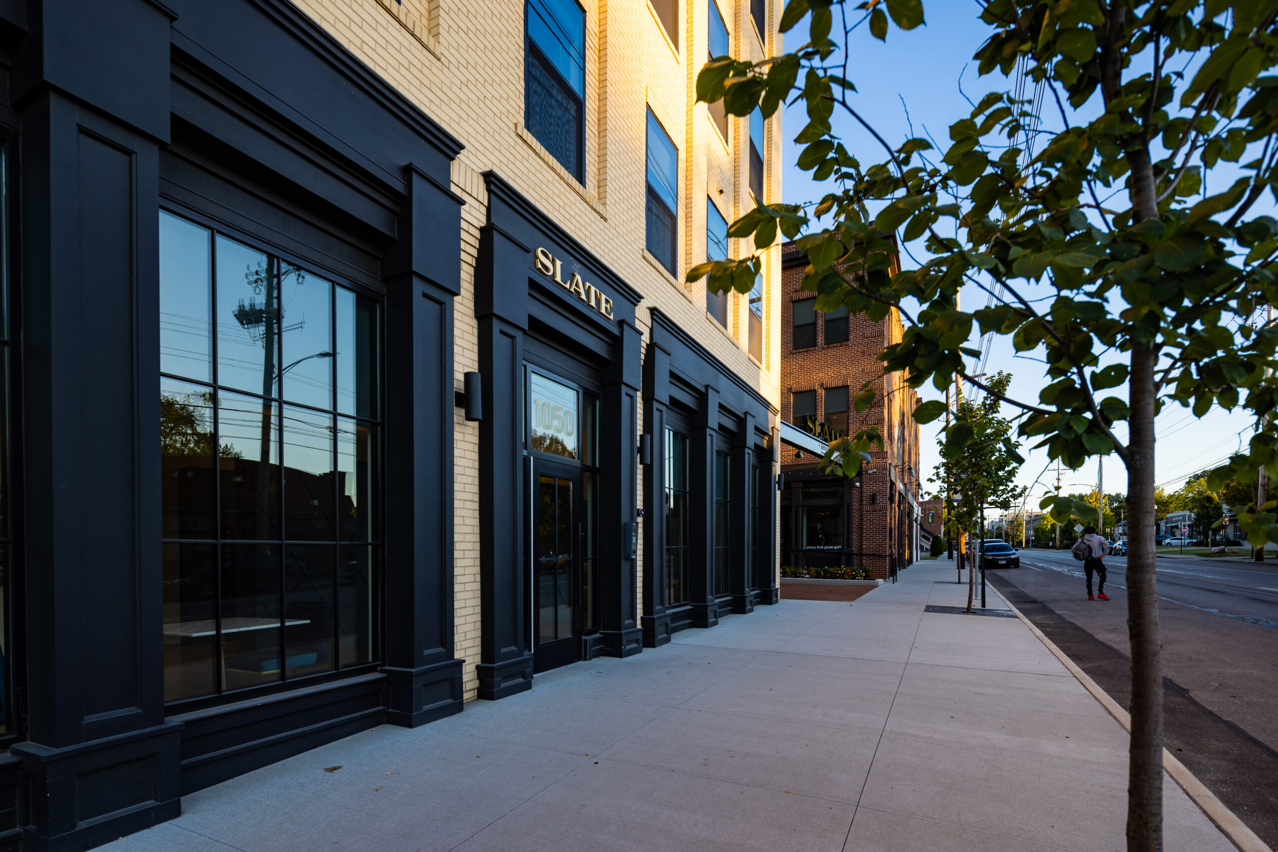 Five story market-rate multi-family development in the Italian Village Neighborhood of Columbus. Building includes first level commercial with shared outdoor patio, covered parking, rooftop terrace and 66 apartments.